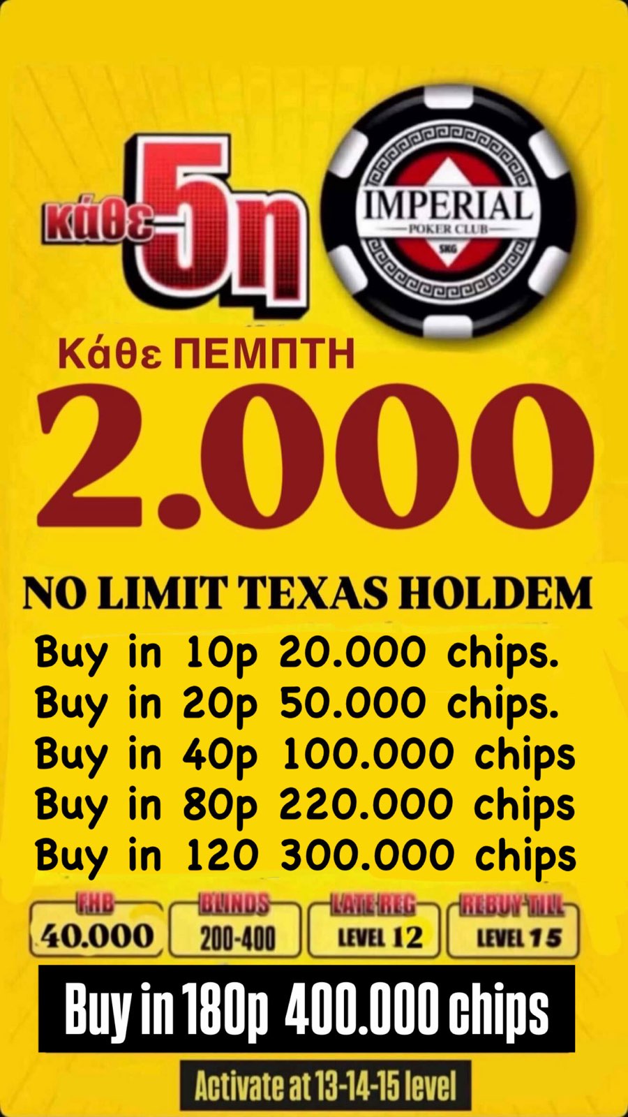 Βuy-in: 180p (400.000) Μόνο στα levels 13-14-15