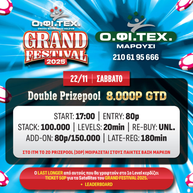το Double prize pool 8.000p gtd) στο Μαρούσι