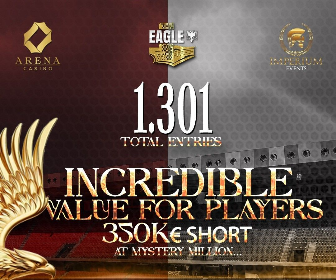 Τεράστιο ήταν τελικά το overlay στο Mystery Bounty του Arena Casino, αφού συνολικά είχε 1.301 συμμετοχές από τις 2.000 που χρειάζονταν για να καλυφθεί το εγγυημένο έπαθλο.