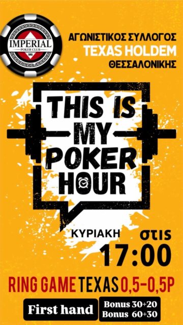 Ο Αγωνιστικός σύλλογος Texas Hold’em ‘Imperial club’ εδρεύει στη Nέστου 4 στην Πολίχνη (Ανθόκηποι), πλησίον του γηπέδου του Μακεδονικού.