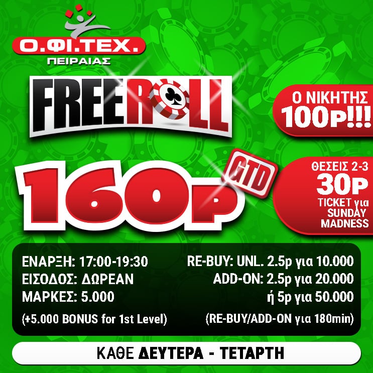 το freeroll Community be a Pro και τη Hot Monday (500p gtd για το νικητή) στο Περιστέρι
