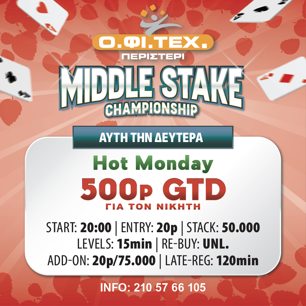 Στις 20:00 η Hot Monday (500p gtd για το νικητή)