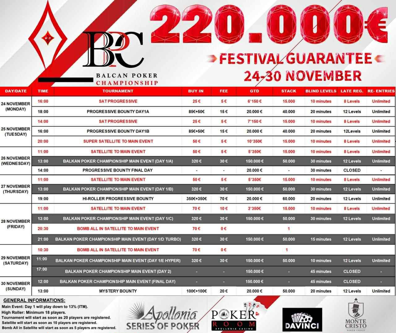 Για περισσότερες πληροφορίες και κρατήσεις, επισκεφθείτε την επίσημη ιστοσελίδα του Balkan Poker Championship: www.balkanpokerchampionship.com
