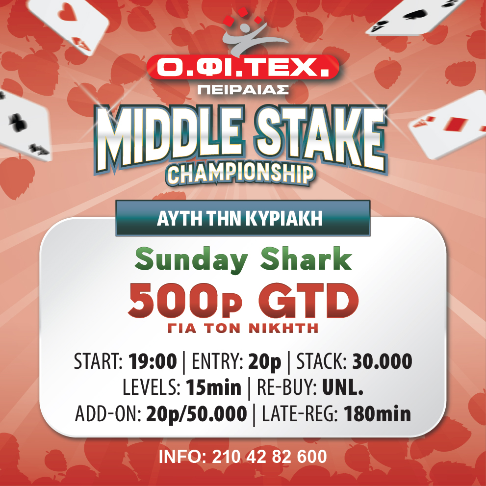 Στις 19:00 το Sunday Shark (500p gtd για το νικητή)
