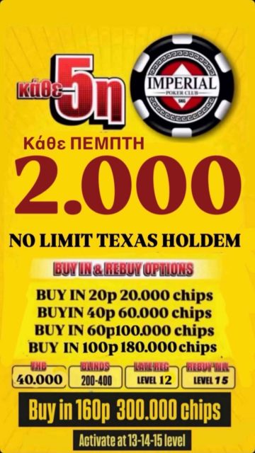Βuy-in: 160p (300.000) Μόνο στα levels 13-14-15