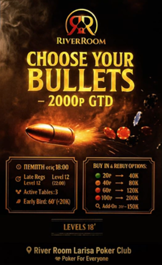Το αγαπημένο εβδομαδιαίο τουρνουά των παικτών (Choose Your Bullets) επιστρέφει απόψε στο River room poker club.