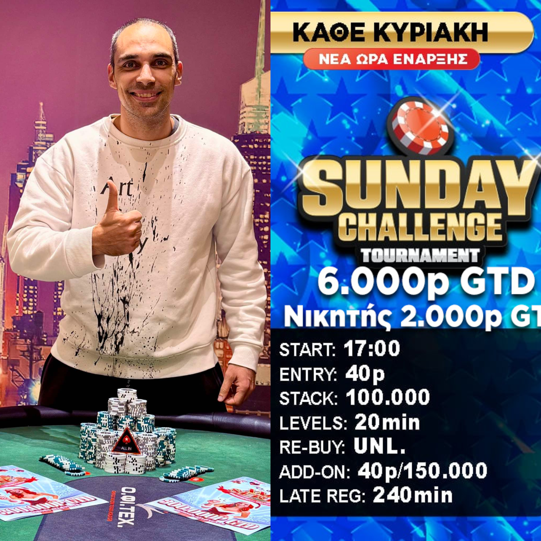 Στις 17:00 το Sunday Challenge (6.000p gtd)