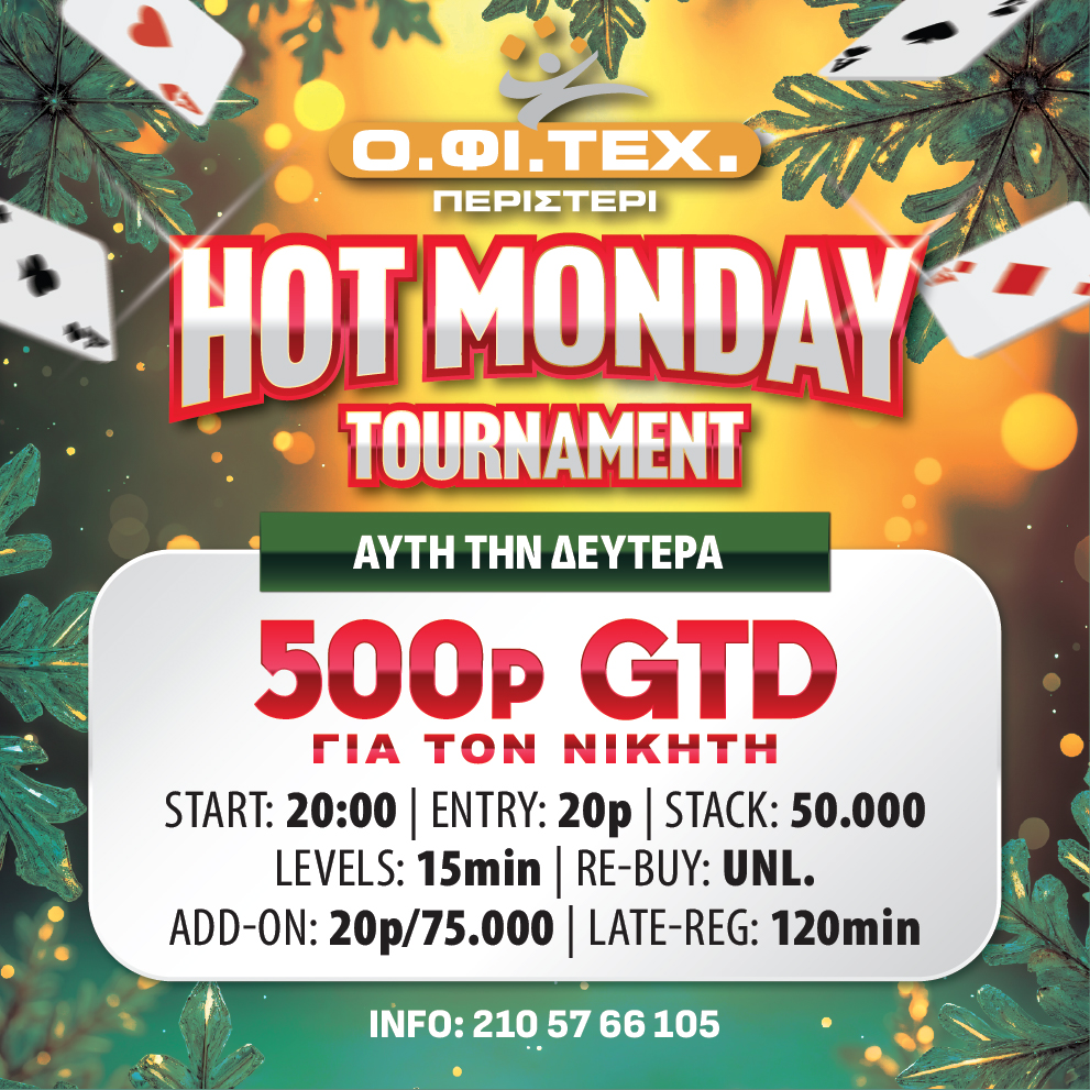 Στις 20:00 η Hot Monday (500p gtd για το νικητή)