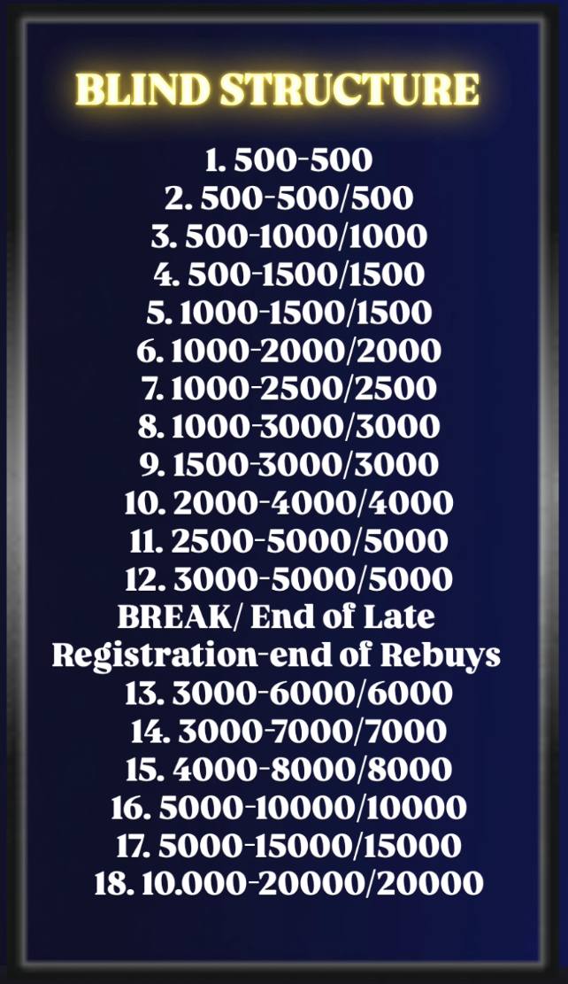 Δικαίωμα για καθυστερημένες εγγραφές και για απεριόριστα rebuys (70p – 100.000) έως και το Level 12