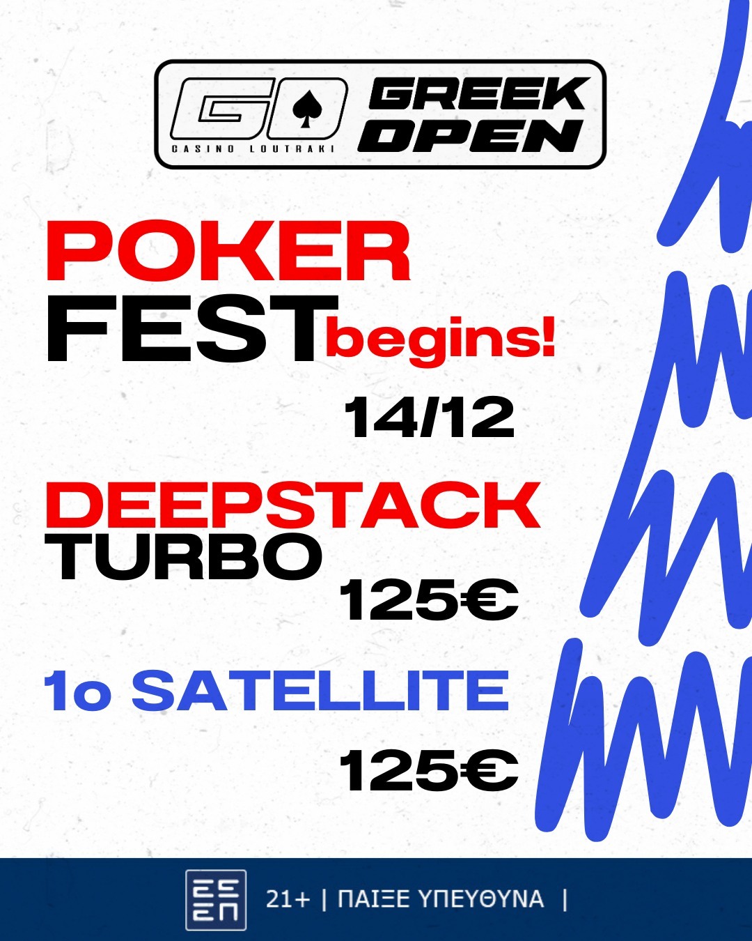 • Στις 16:00 το €125 NLH Deepstack (100k stack, 12 levels late reg)