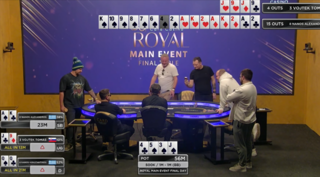 στο board με το pot να καταλήγει στον “αρχηγό” και τον Vojtek να οδηγείται στο rail!