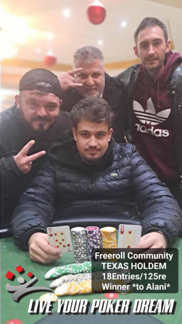 Στο Βοοster του Πειραιά (27e/15r/14a) ο Γκέρτι έκανε το back to back για 600p, ενώ στο freeroll του Περιστερίου (18e/125r) η πρωτιά κατέληξε στο “Alani” (φωτο).