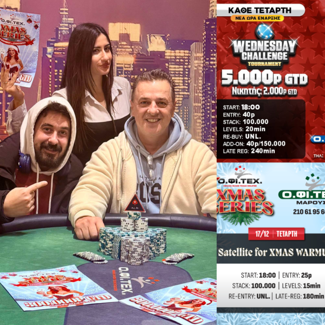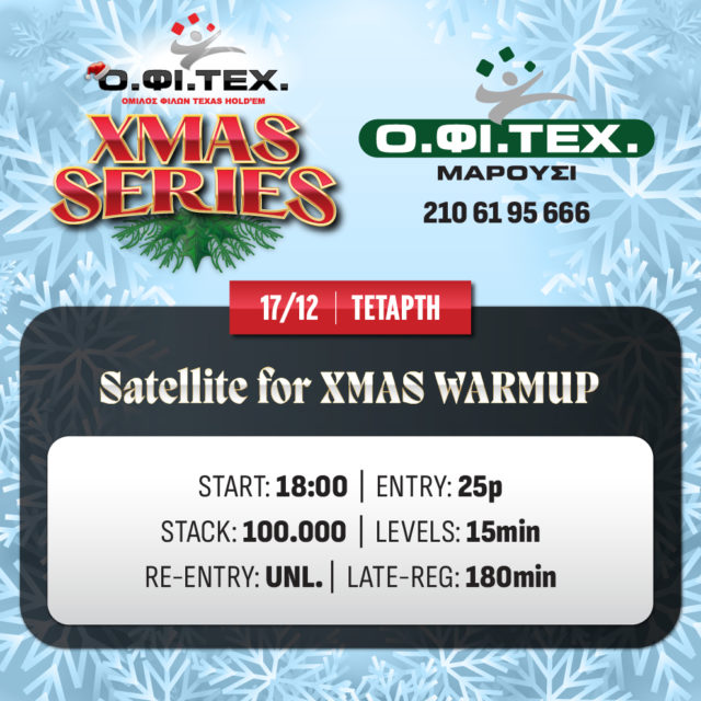 Εκτάκτως σήμερα στην Κρήτη το τελευταίο τουρνουά της χρονιάς (επιστροφή από 9/1), ενώ αύριο ξεκινάει το Xmas Warm-Up (30.000p gtd) με πρώτη στάση στο Μαρούσι.