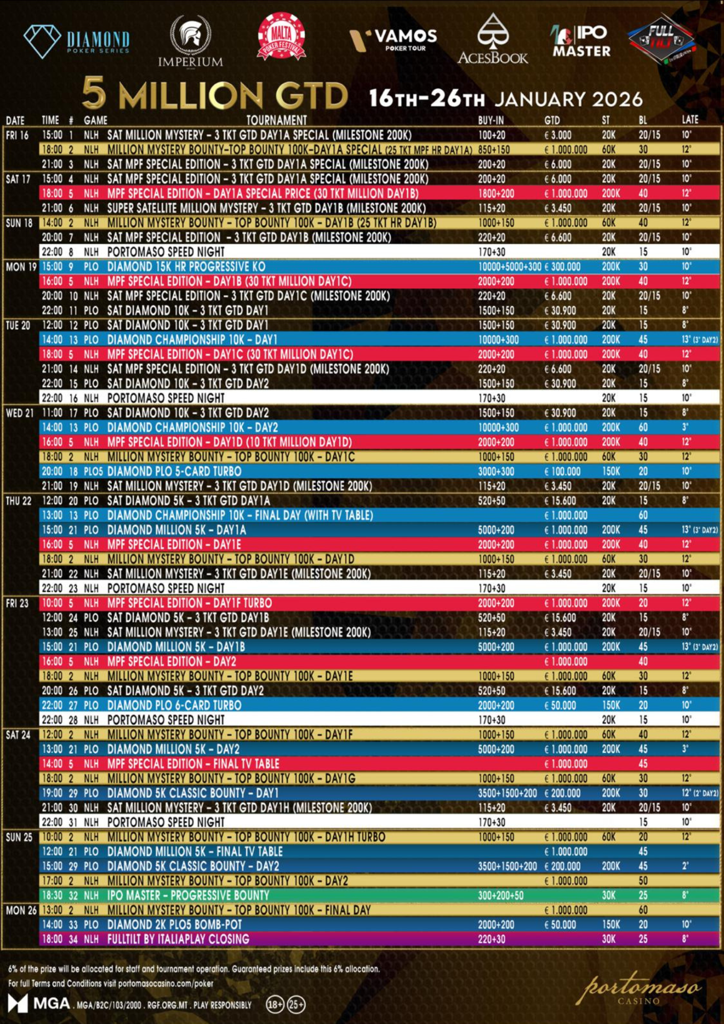 Από 16 έως 26 Iανουαρίου σε συνεργασία με Imperium, MPF, AcesBook, Diamond, IPO Master και Vamos Poker Tour θα φιλοξενήσει το Grand Opening με συνολικά €5.000.000 σε εγγυημένα έπαθλα!