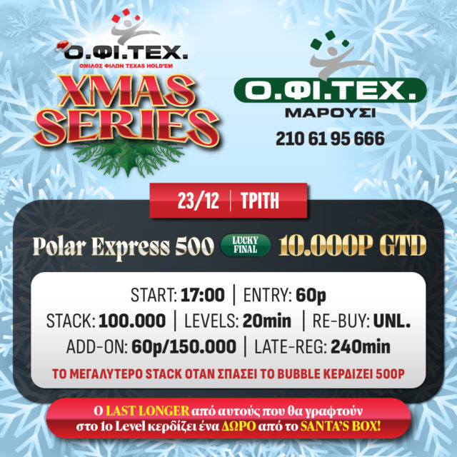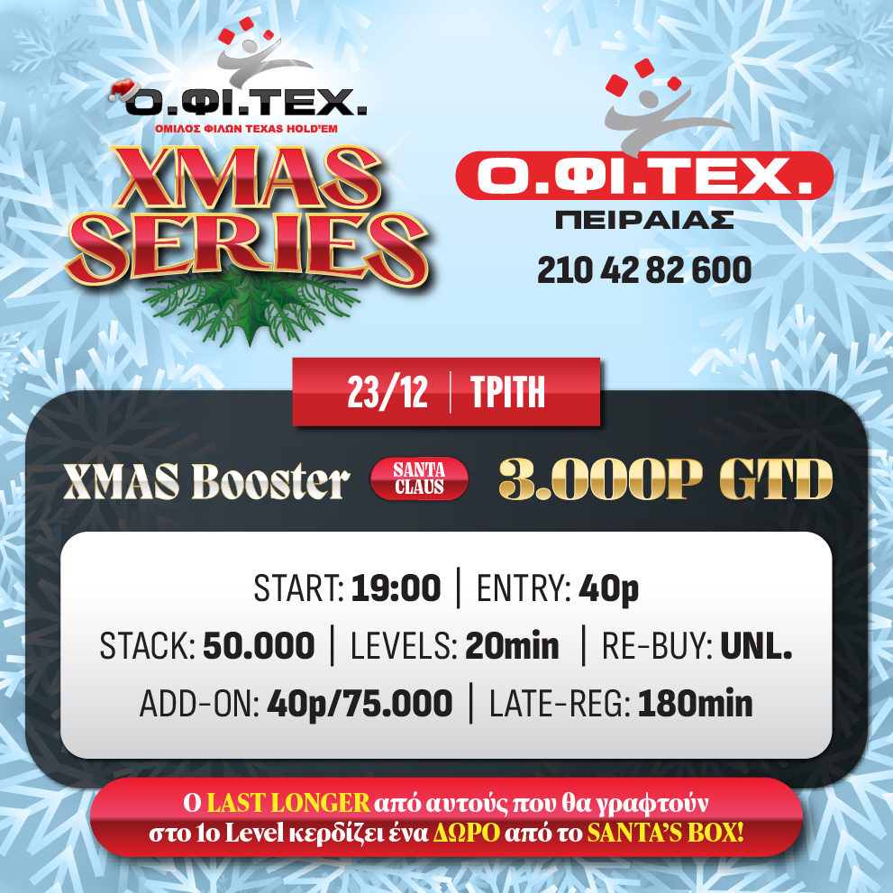 2: Ένας παίκτης κερδίζει ένα BUY-IN και ένα ΔΩΡΟ από το χριστουγεννιάτικο δέντρο του ΟΦΙΤΕΧ.