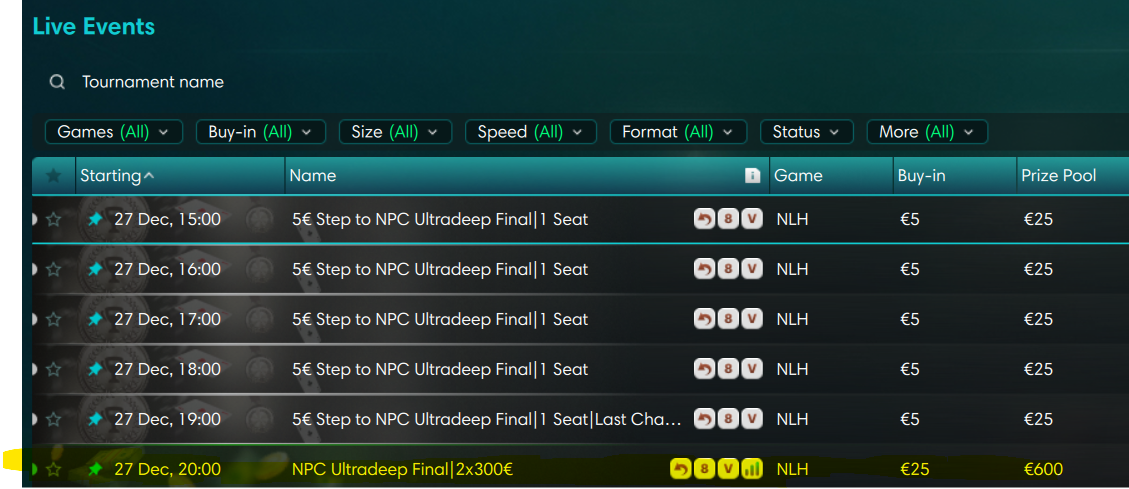 Νωρίτερα φυσικά υπάρχουν τα step satellites των €5 που μοιράζουν εισιτήρια για τον βραδινό τελικό.