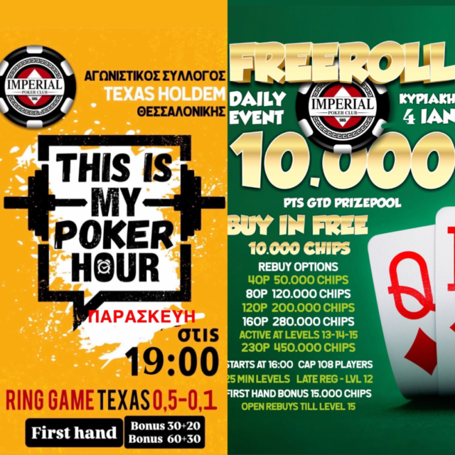 Mε 0.5p/1p Texas games θα μπει η νέα χρονιά στο Imperial και στο πρώτο hand οι παίκτες έχουν bonus 60p + 30p ή 30p + 20p.