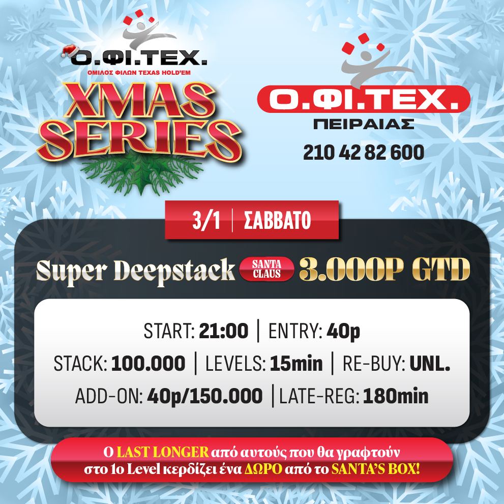 το freeroll και το Super Deepstack (3.000p gtd) στον Πειραιά