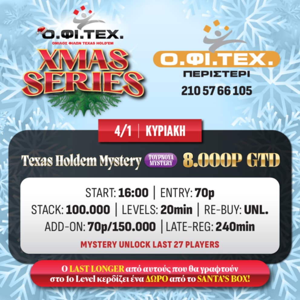 το Texas Hold’em Mystery (8.000p gtd) στο Περιστέρι
