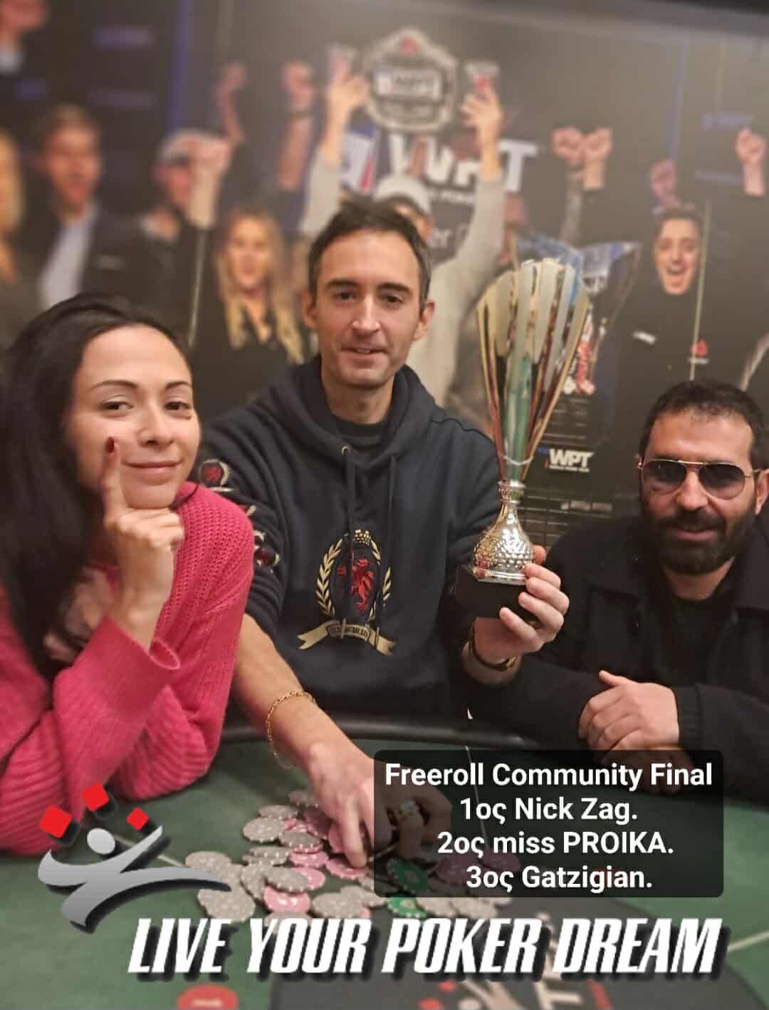 Στο 8-max Texas του Αλίμου τέλος, νικητής αναδείχθηκε ο Δημήτρης Λέτζος για 380p, ενώ στο freeroll community final στην κορυφαία τριάδα βρέθηκαν Nick Zag, Miss Proika και Gatzigian.