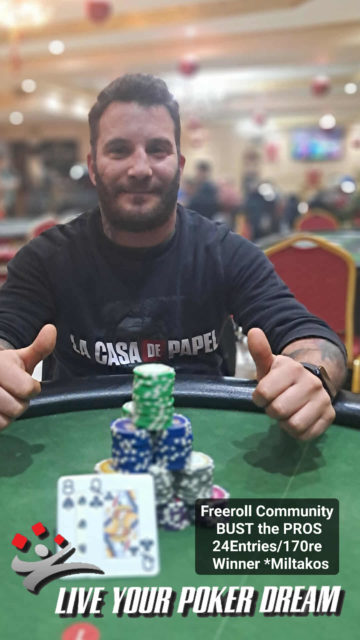 Στο freeroll του Περιστερίου τέλος (24e/170r) η πρωτιά κατέληξε στον “Miltakos”.