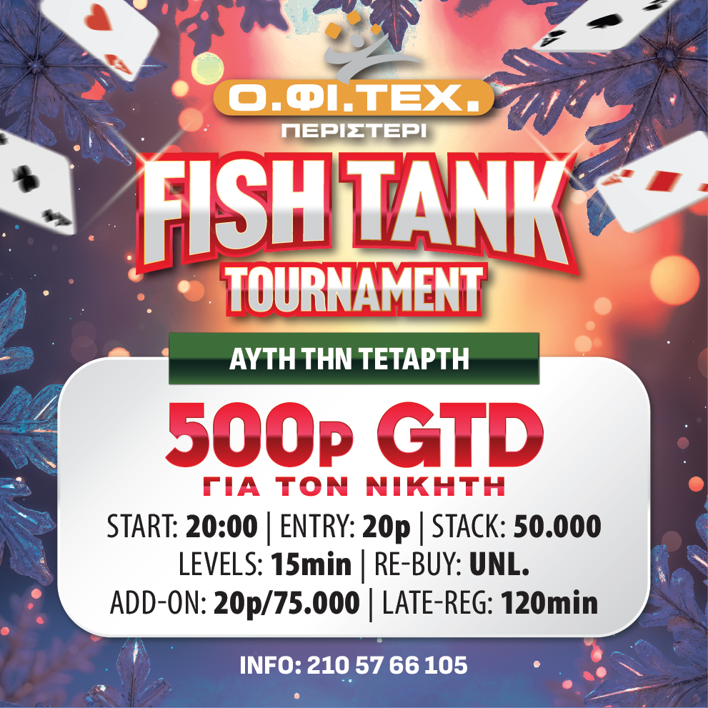 το freeroll Locked Progressive και το Fish Tank (500gtd για το νικητή) στο Περιστέρι