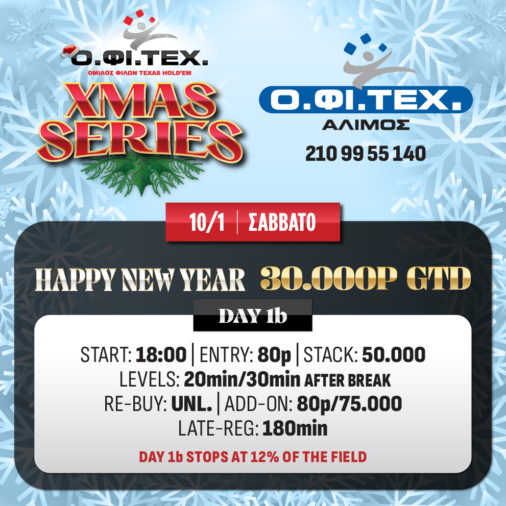 τo freeroll mystery και τη Day 1b του Happy New Year (30.000p gtd) στον Άλιμο