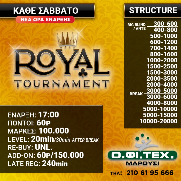 Blind levels: 20 λεπτά / 30 μετά το break