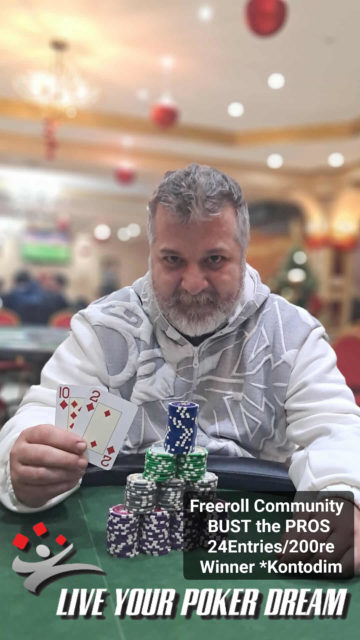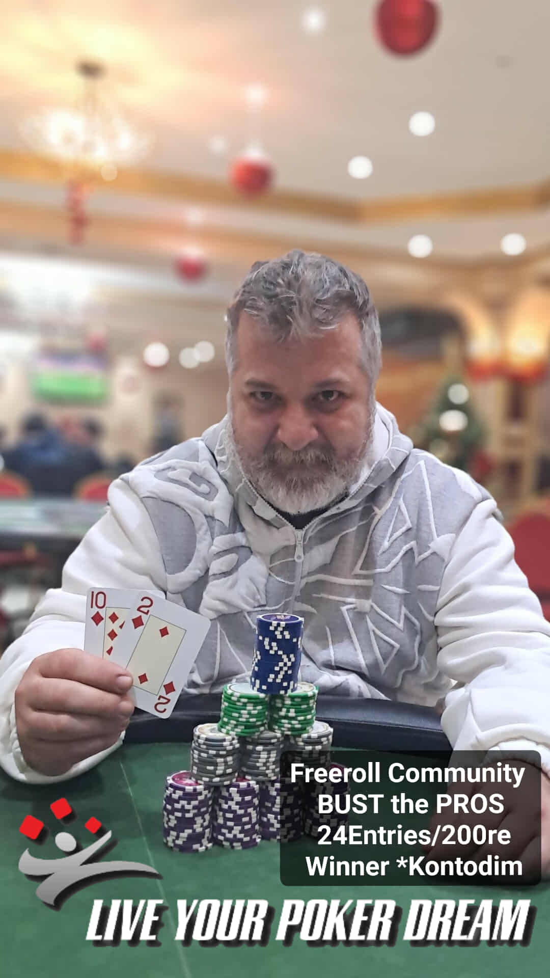 Στο freeroll του Αλίμου (24e/200r) ο “Kontodim” επέστρεψε στις νίκες.