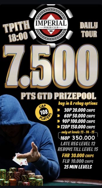 Στις 18:00 η ώρα έναρξης, τέσσερις επιλογές για αρχικό buy-in/stack, 25λεπτα levels και τουλάχιστον 7.500p για τους παίκτες!