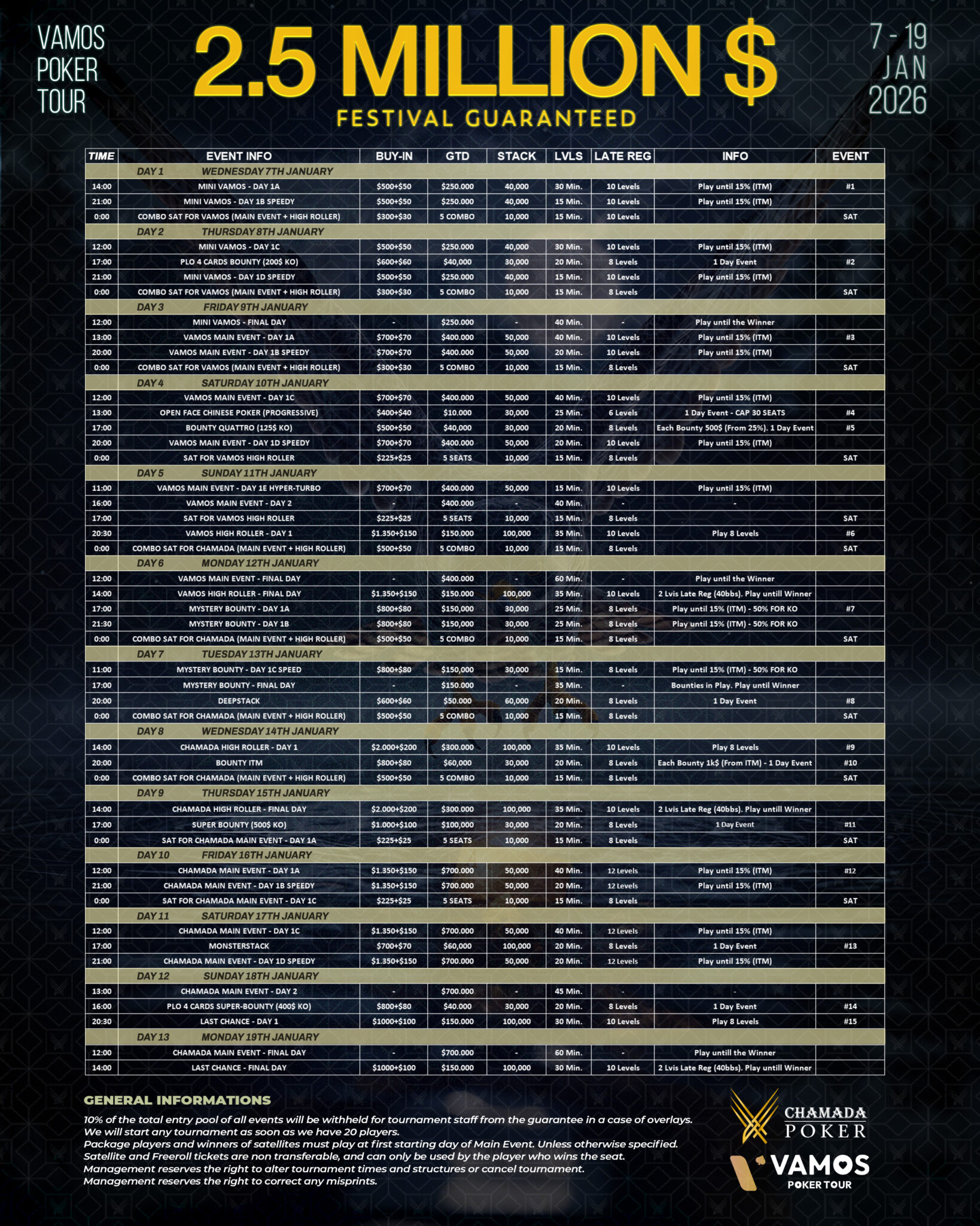 Το Vamos Poker Tour αναπτύσσεται ραγδαία τους τελευταίους μήνες και το μεγαλύτερο φεστιβάλ της σειράς έως τώρα διεξάγεται αυτή την περίοδο στο Chamada Prestige Hotel.