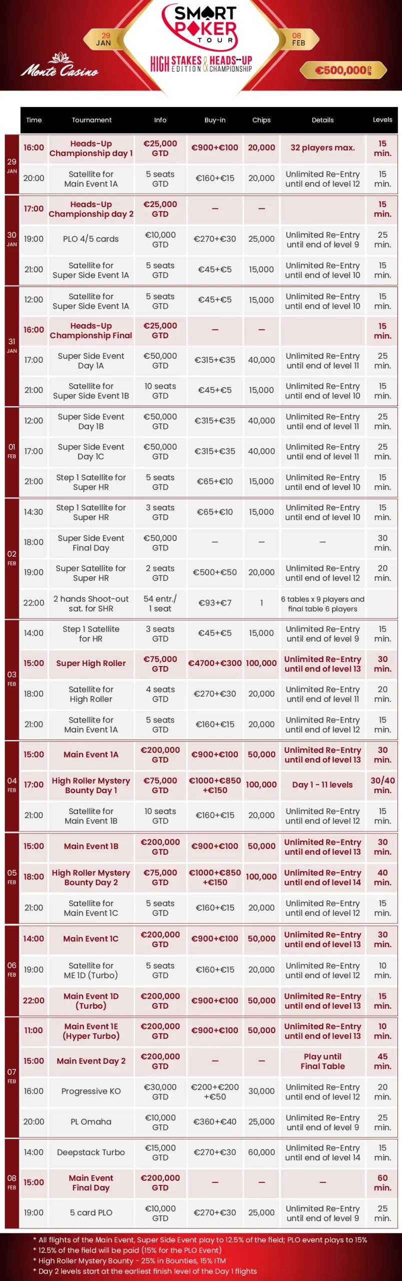 To Smart Poker Tour θα διεξαχθεί από 29 Ιανουαρίου έως 7 Φεβρουαρίου στο Monte Casino Sofia και στην πλατφόρμα της Novibet τρέχουν online προκριματικά που μοιράζουν πακέτα.