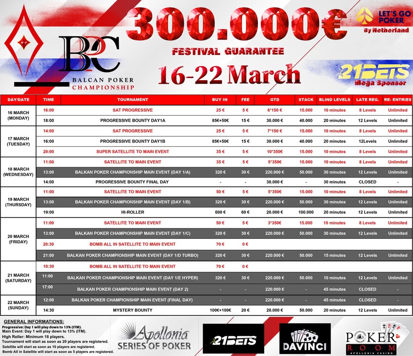 Με την συμμετοχή των Ολλανδών, αλλά και μεγάλου γκρουπ παικτών από Δανία αναμένεται το αδιαχώρητο στο επερχόμενο Balkan Poker Championship #3 το διάστημα 16-22 Μαρτίου!