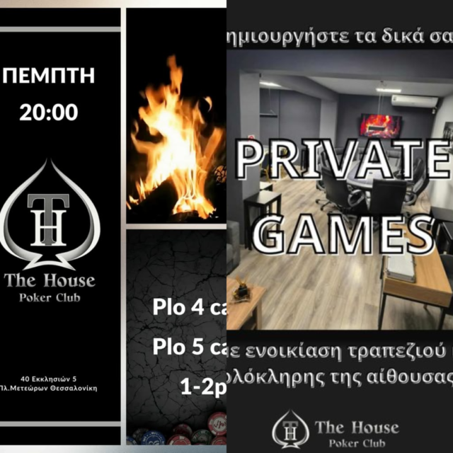 Ο Αγωνιστικός σύλλογος ‘The Ηοuse Poker Club’ εδρεύει στη 40 Εκκλησιών 5, στην πλατεία Μετεώρων.