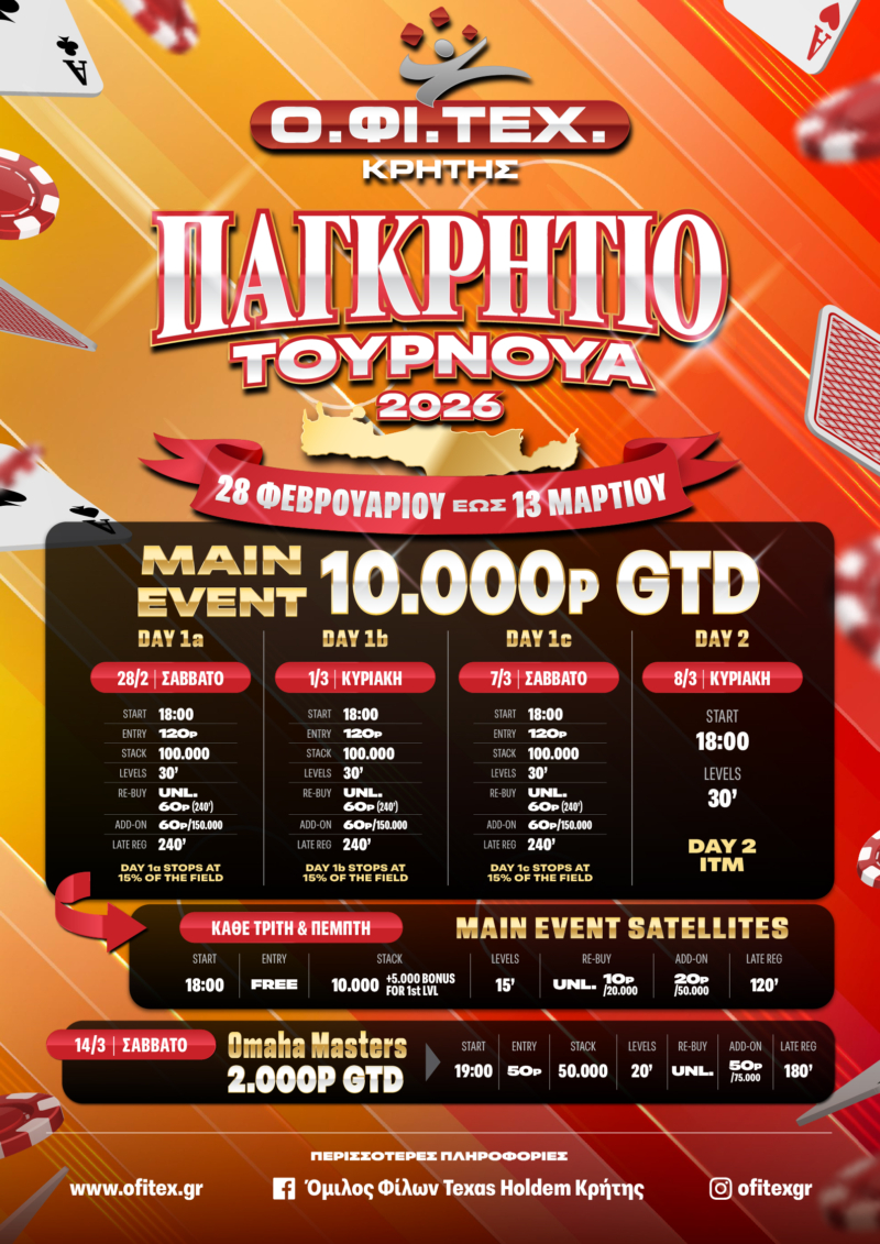 Καθυστερημένες εγγραφές και δικαίωμα για απεριόριστα rebuys τα πρώτα 240 λεπτά