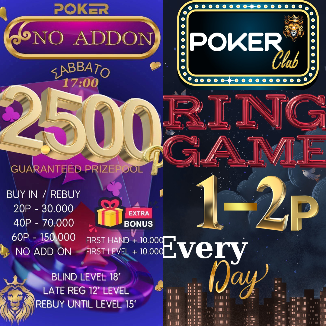 Λίγο νωρίτερα όπως κάθε Σάββατο (17:00) η έναρξη του No Addon που συνοδεύεται και πάλι από 2.500p gtd, ενώ δεν θα λείπουν και τα ring games τις βραδινές ώρες!