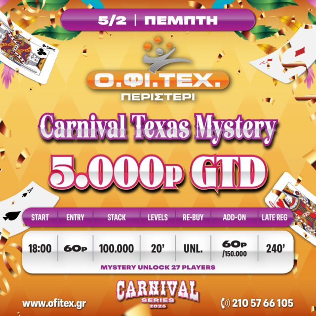 το Carnival Texas Mystery (5.000p gtd) στο Περιστέρι