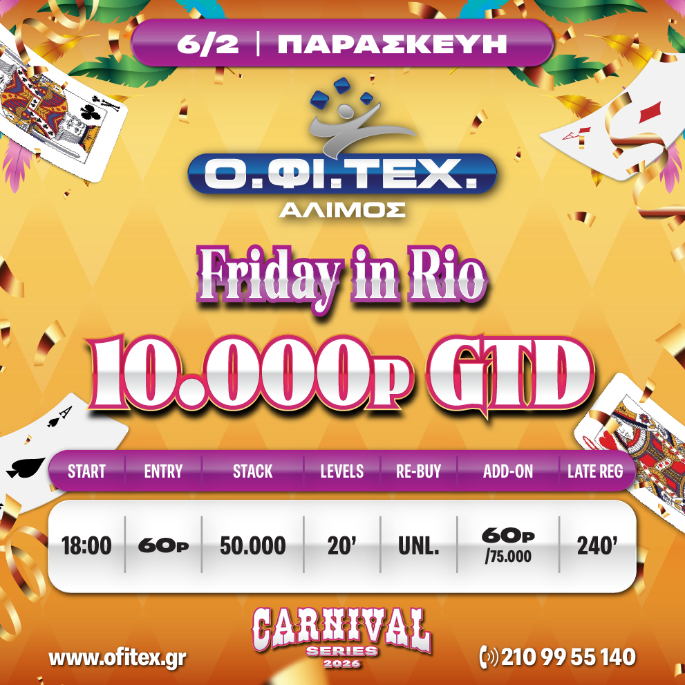 τη Friday in Rio (10.000p gtd) στον Άλιμο