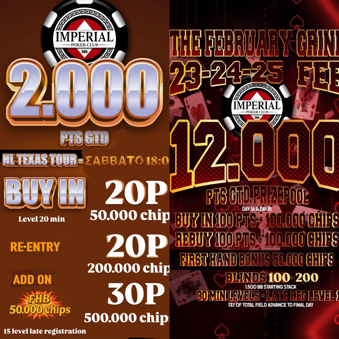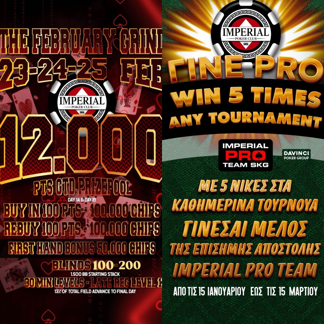 Μην ξεχνάτε πως με 5 νίκες στα καθημερινά τουρνουά (15 Ιανουαρίου – 15 Μαρτίου) γίνεστε μέλη της Imperial Team Pro και κερδίζετε πακέτο για το Apollonia BPC #4, ticket για το main event, για τα δύο bounty events και διαμονή!