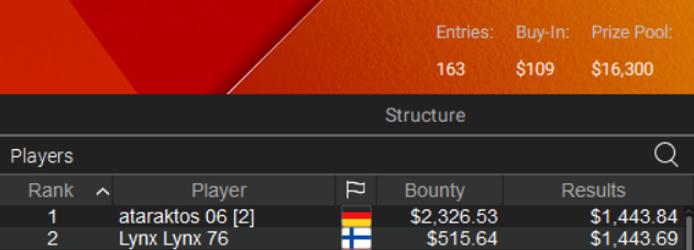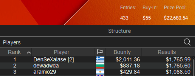 O “DenSeXalase” εξάλλου αναδείχθηκε νικητής στο event #29-H ($55 NLH PKO Hyper) για $3.777.