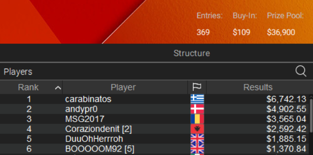 Ο “carabinatos” βρέθηκε στην κορυφή του event #24-H ($109 NLHE) για $6.742.