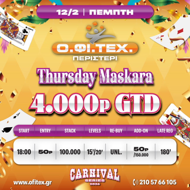 το Thursday Maskara (4.000p gtd) στο Περιστέρι