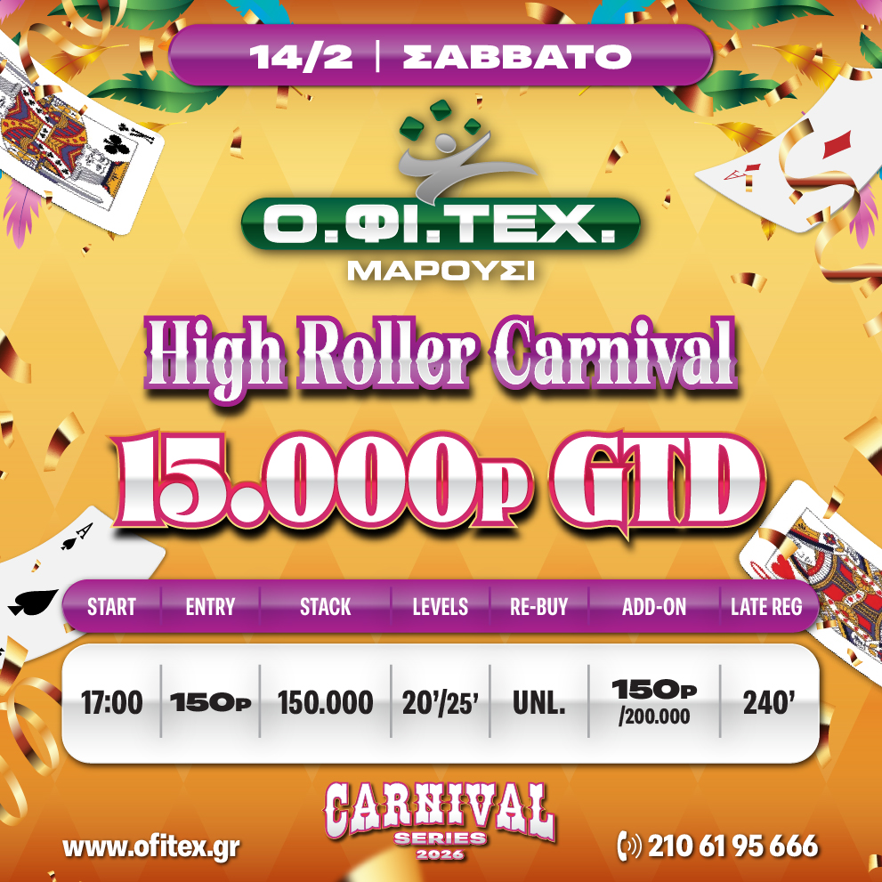 το High Roller Carnival (15.000p gtd) στο Μαρούσι