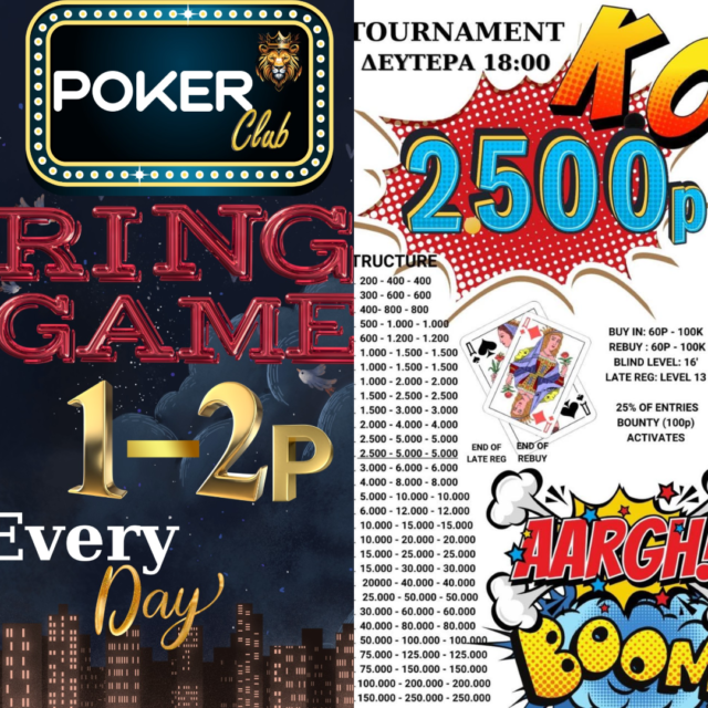 Η Κυριακή όπως πάντα είναι αφιερωμένη αποκλειστικά στα ring games, ενώ η εβδομάδα αύριο ξεκινάει μ” ένα 60p NLH Knockout όπου στο 25% των entries ενεργοποιείται 100p bounty.