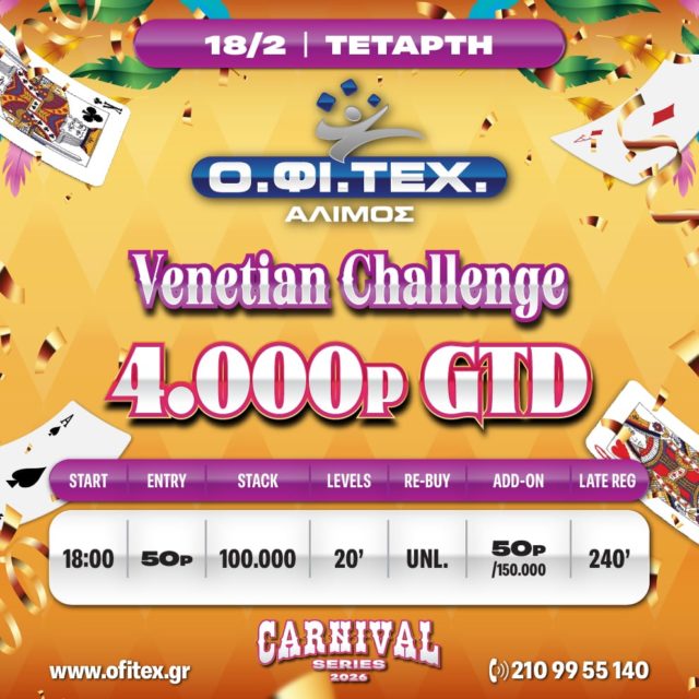 το Venetian Challenge (4.000p gtd) στον Άλιμο