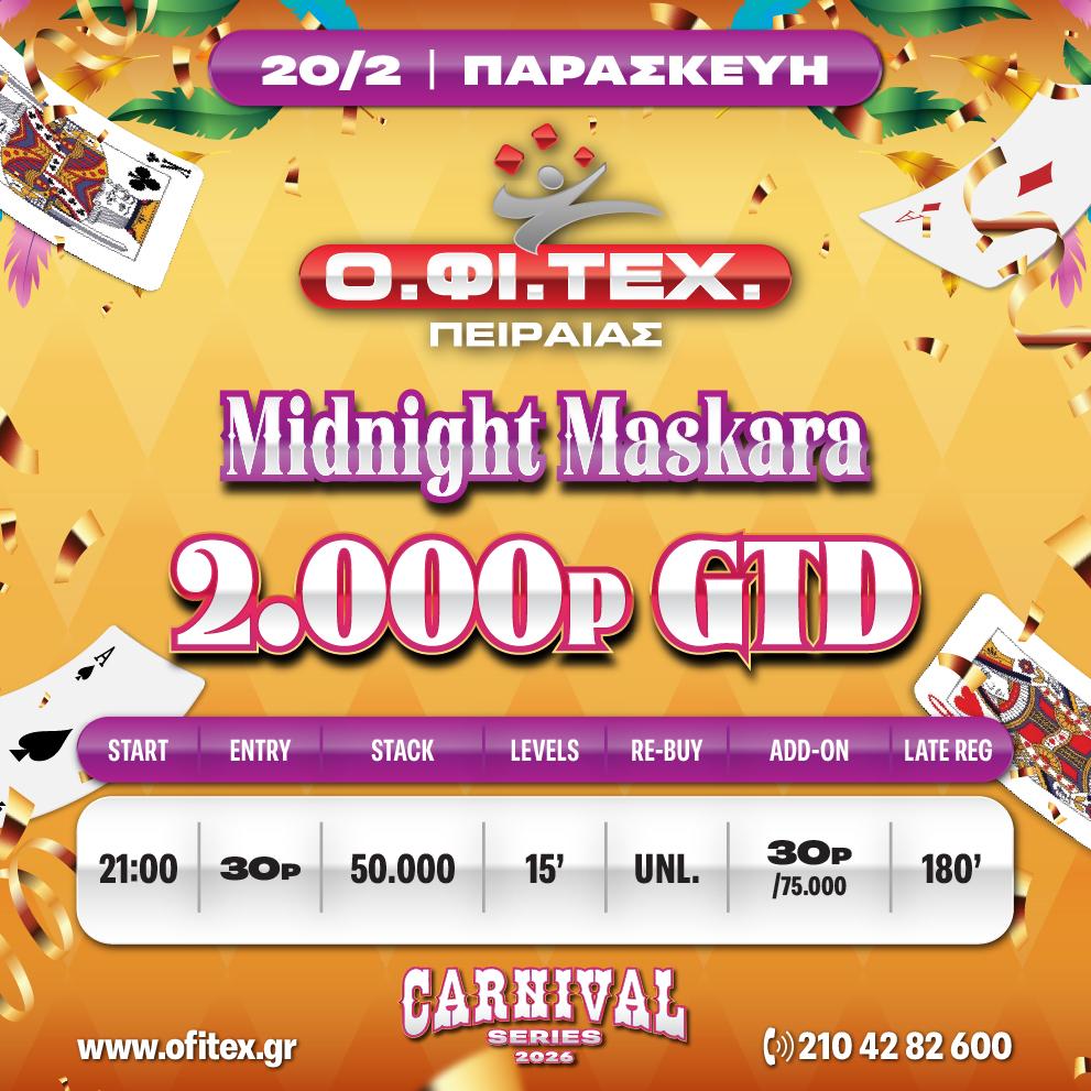 τo freeroll road to Midnight και το Midnight Maskara (2.000p gtd) στον Πειραιά