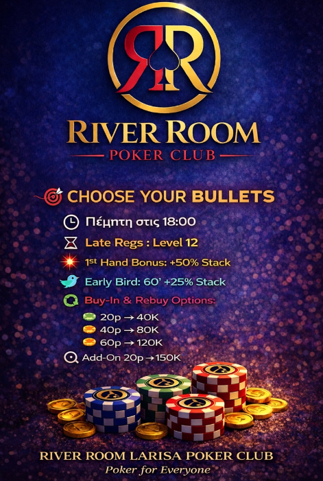 Η Πέμπτη στο River room poker club φέρνει στα μέλη του συλλόγου το καθιερωμένο Choose your Bullets.