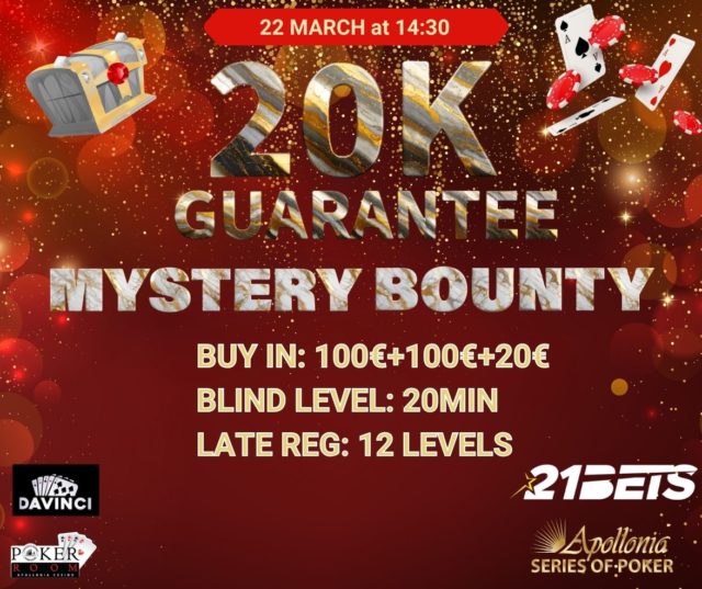 €20,000 GTD – Buy-in: €600 + €60 – Blinds: 20’ – Starting stack 100,000 – Late Reg: 12 levels