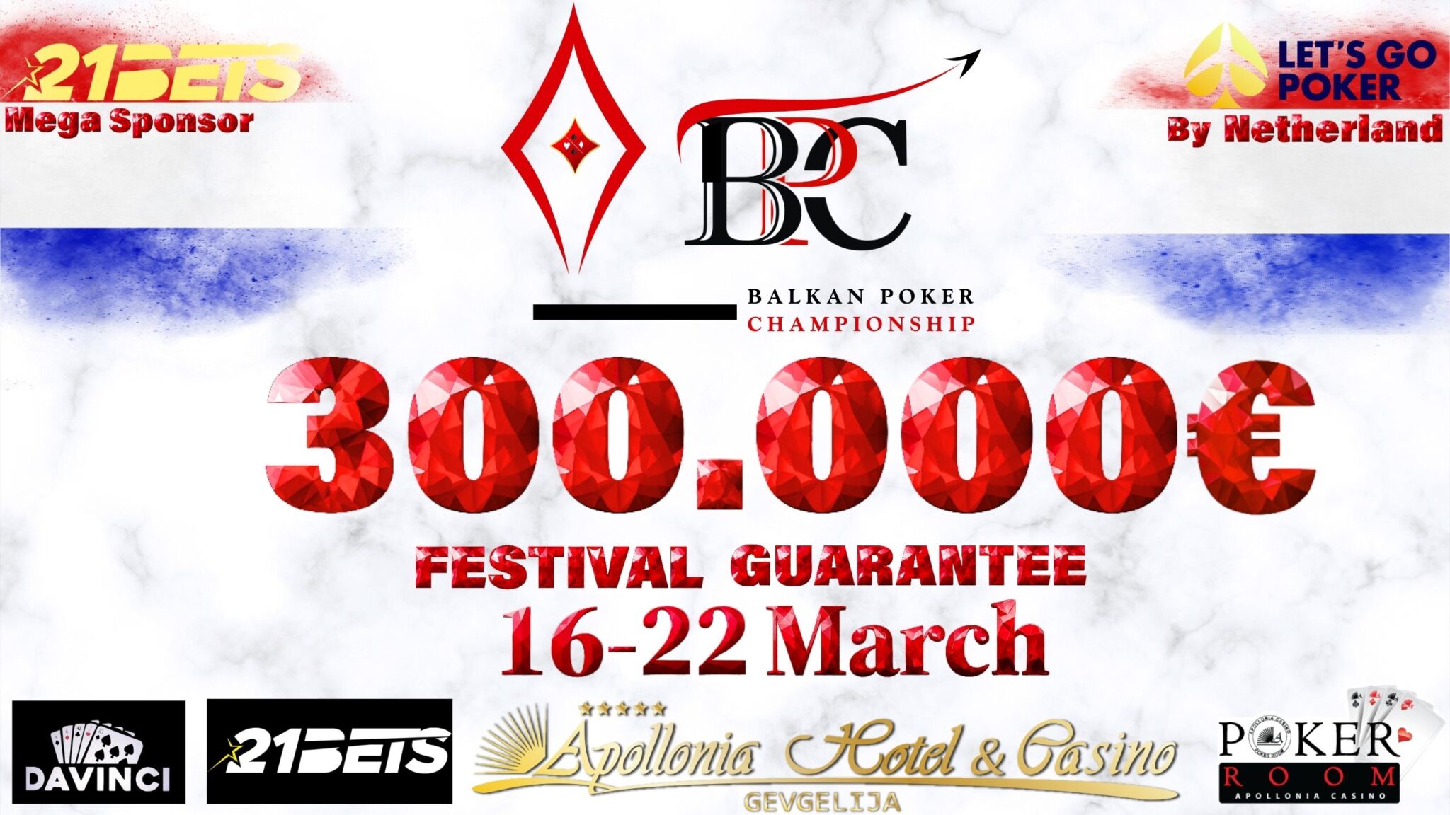 Το φεστιβάλ υποστηρίζεται από την 21Bets ως βασικό χορηγό, ενισχύοντας ακόμη περισσότερο το διεθνές προφίλ του Balkan Poker Championship και επιβεβαιώνοντας το συνεχώς αυξανόμενο ενδιαφέρον της ευρωπαϊκής κοινότητας πόκερ για τη συγκεκριμένη σειρά.