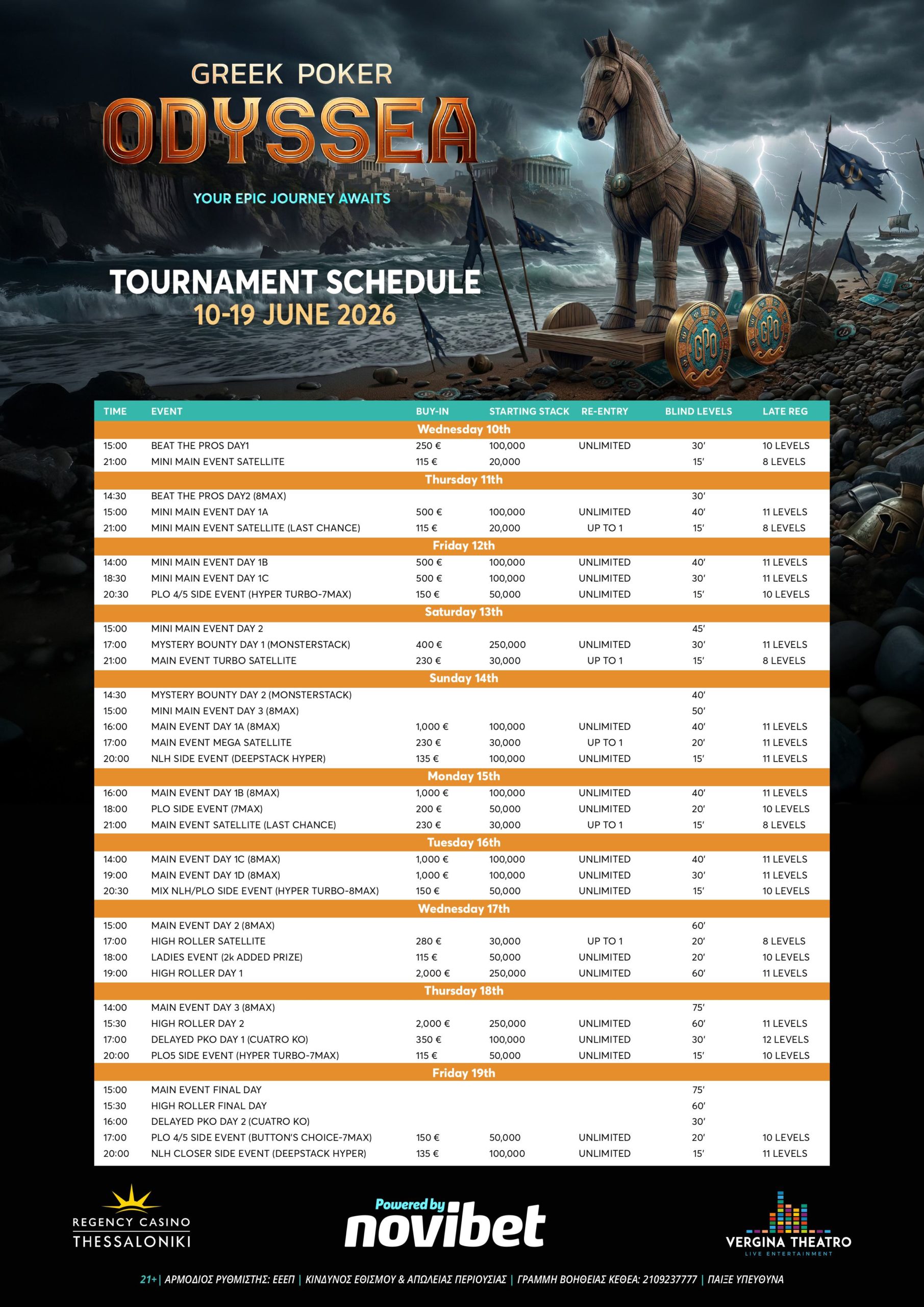Ένα διεθνές φεστιβάλ που ήδη έχει προκαλέσει αίσθηση μπήκε πλέον στις… ράγες κι έρχεται ν” αφήσει εποχή! Το δεύτερο κατά σειρά Greek Poker Odyssea υπό την αιγίδα της Novibet έρχεται… φουριόζο το διάστημα 10-19 Ιουνίου στο Regency Casino Thessaloniki!